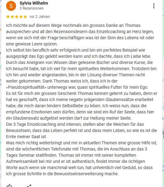 Eine von etlichen Rezensionen bei Google, die den spirituellen Durchbruch beschreibt!